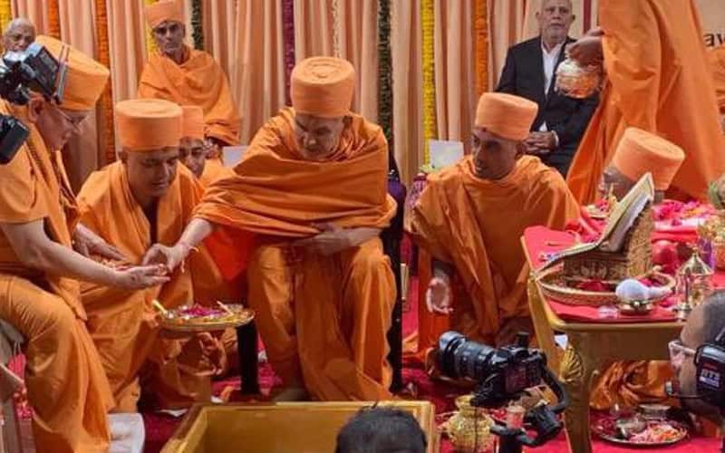 Suri and BAPS Hindu Mandir committee head and community leader B.R. Shetty were among those who laid foundation stones. Some 50 priests from India were part of the ceremony, the Khaleej Times reported.