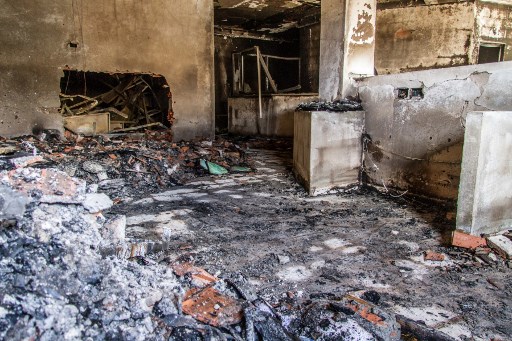 A general view taken on January 10, 2018 shows the tax office of the El Guetar village, southeast of Gafsa, after is was burned the previous night following protests against the cost of living and austerity measures.