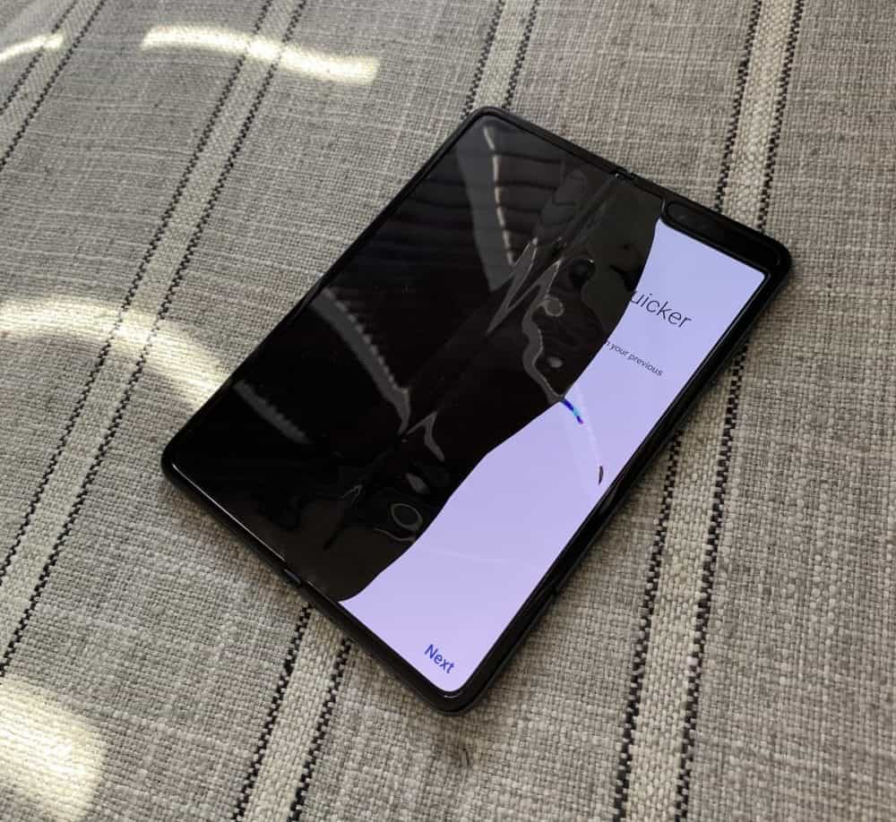 Gurman tweeted, “The screen on my Galaxy Fold review unit is completely broken and unusable just two days in. Hard to know if this is widespread or not. … The phone comes with this protective layer/film. Samsung says you are not supposed to remove it. I removed it, not knowing you’re not supposed to (consumers won’t know either). It appeared removable in the left corner, so I took it off. I believe this contributed to the problem.”