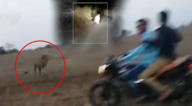 A lion, lioness and their cub are seen running frantically out of fear to escape as the roaring bikes speed towards them. As per media reports, the footage shot in an open field in the Amreli area of the Saurashtra region near the Gir Wildlife Sanctuary in Gujarat.