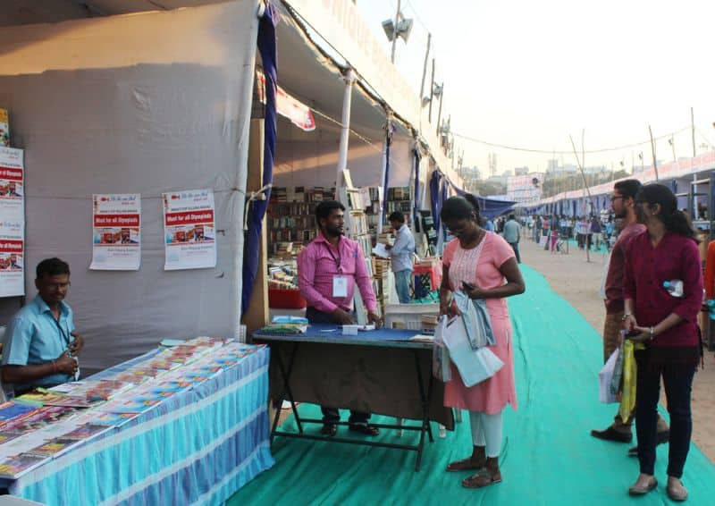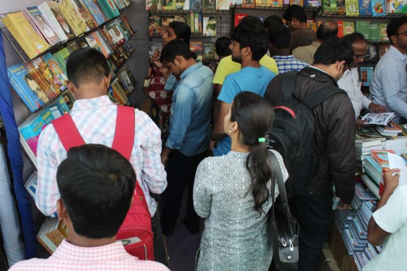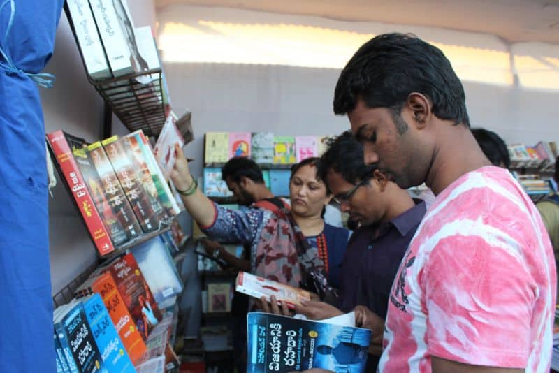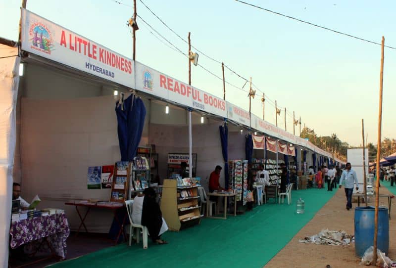 The 31st Hyderabad Book Fair was inaugurated and opened for the public on Thursday at NTR stadium. The 31stedition of Hyderabad Book Fair which is held every year in the month of December was postponed to January because of the World Telugu Conference.The Book fair which started on Thursday will conclude on 28 January. There are more than 300 stalls set up by publishers not only from Hyderabad, but even from Nellore, Vijayawada, New Delhi, Mumbai, Jaipur, Chennai and other states. Secretary of Book Fair Society Chandra Mohan told The Hans India this year there are 331 book stalls set up and the book fair would be open for the public from 2.30 pm to 8.30 pm and on holidays it will be open from 12 pm to 8.30 pm. He said that the entry ticket cost Rs 5 and the entry is free for students if they show their identity cards.Explaining about the stalls at the Hyderabad Book Fair Chandra Mohan said that out the 331 stalls some of the stalls have unique features. He said that there is a stall of Sanskrit books from Varanasi, devotional book, children world and some stalls related to women. He said that there are even stalls of central and state governments including National Book Trust, Publication Division, Telangana State Language and Culture department, Open University and some other from British council and Oxford. (Photo: Zabi)The 31st Hyderabad Book Fair was inaugurated and opened for the public on Thursday at NTR stadium. The 31stedition of Hyderabad Book Fair which is held every year in the month of December was postponed to January because of the World Telugu Conference.The Book fair which started on Thursday will conclude on 28 January. There are more than 300 stalls set up by publishers not only from Hyderabad, but even from Nellore, Vijayawada, New Delhi, Mumbai, Jaipur, Chennai and other states. Secretary of Book Fair Society Chandra Mohan told The Hans India this year there are 331 book stalls set up and the book fair would be open for the public from 2.30 pm to 8.30 pm and on holidays it will be open from 12 pm to 8.30 pm. He said that the entry ticket cost Rs 5 and the entry is free for students if they show their identity cards.Explaining about the stalls at the Hyderabad Book Fair Chandra Mohan said that out the 331 stalls some of the stalls have unique features. He said that there is a stall of Sanskrit books from Varanasi, devotional book, children world and some stalls related to women. He said that there are even stalls of central and state governments including National Book Trust, Publication Division, Telangana State Language and Culture department, Open University and some other from British council and Oxford. (Photo: Zabi)