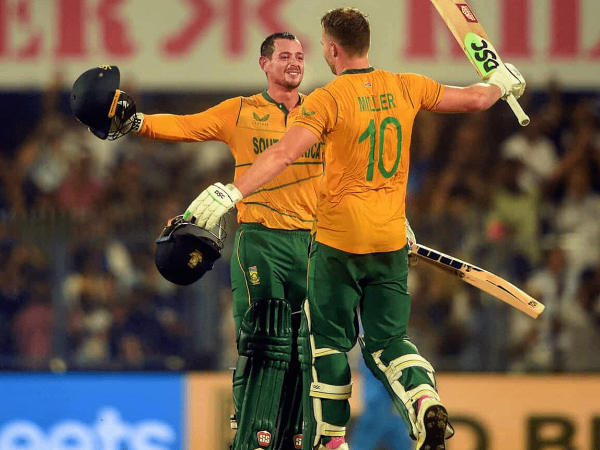 Even after the end of powerplay, both South African batters continued their aggressive intent. De Kock reverse-sweeped Ashwin for a six and in the same over, Siraj put down a catch to give Rossouw a reprieve and a six. Soon, De Kock brought up his fifty in 33-balls with a six off Umesh. In the same over, Rossouw went past fine leg for a four as South Africa moved to 96/1 after 10 overs.