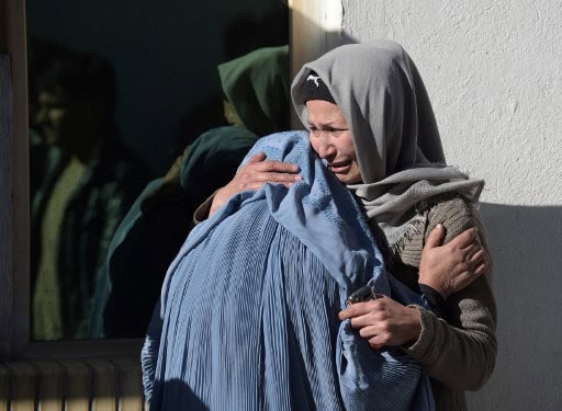 Afghan women weep for their relatives at a hospital following explosions at a Shiite cultural centre in Kabul on December 28, 2017.