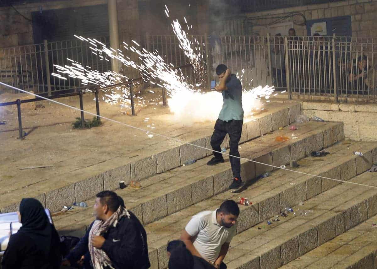 Amateur video footage posted on social media showed police stun grenades and tear gas inside the Al-Aqsa Mosque during skirmishes between officers and Palestinian rioters.