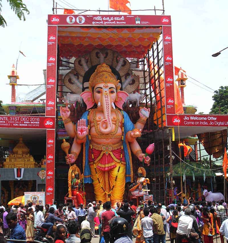 People had darshan 58 feet Khairatabad Ganesh idol on the occasion of the Ganesh Chaturthi, festival in Hyderabad Monday. UNI PHOTO