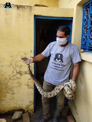 Shiv Pratap Singh, one of the residents said, “We were on our terrace when we heard a hissing sound coming from the drainage pipe. Upon further investigation, we found a python stuck inside. We immediately alerted the Wildlife SOS team.”