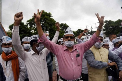 New Delhi, Dec 8 : Hundreds of Aam Aadmi Party (AAP) leaders and workers rallied at the busy ITO here on Tuesday in the wake of reports that Delhi Chief Minister Arvind Kejriwal was detained at his residence, a charge denied by the police.