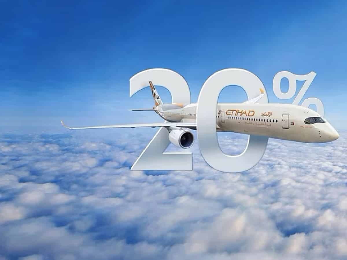 Etihad is offering a 20 per cent discount on the price of flights until Tuesday, March 14 midnight.