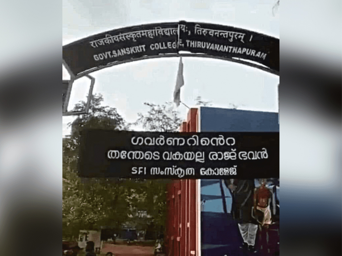 Thiruvananthapuram: An SFI banner with abusive remarks against Kerala Governor Arif Mohammed Khan was spotted on Wednesday at the Government Sanskrit College, here.