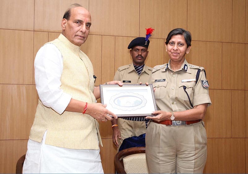 HYDERABAD, SEP 2 (UNI):- Union Home Minister Rajnath Singh being presented a memento by the Director, National Police Academy Aruna Bahuguna at Sardar Vallabhbhai Patel National Police Academy in Hyderabad on Friday. UNI PHOTO-152U