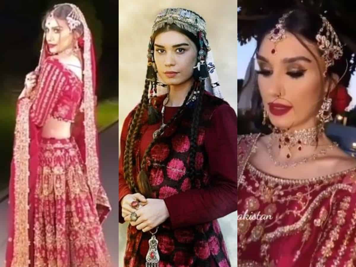 Burcu Kiratli of Ertugrul fame has stunned in her latest photo-shoot for a Pakistani designer. She donned traditional Pakistani dresses, including bridal wear, for the photo-shoot for designer Ali Zeeshan. Burcu Kiratli already gained popularity in Pakistan with Ertugrul but with the latest bridal photoshoot where she is looking glamorous and gorgeous it seems like she is completely stealing the show.