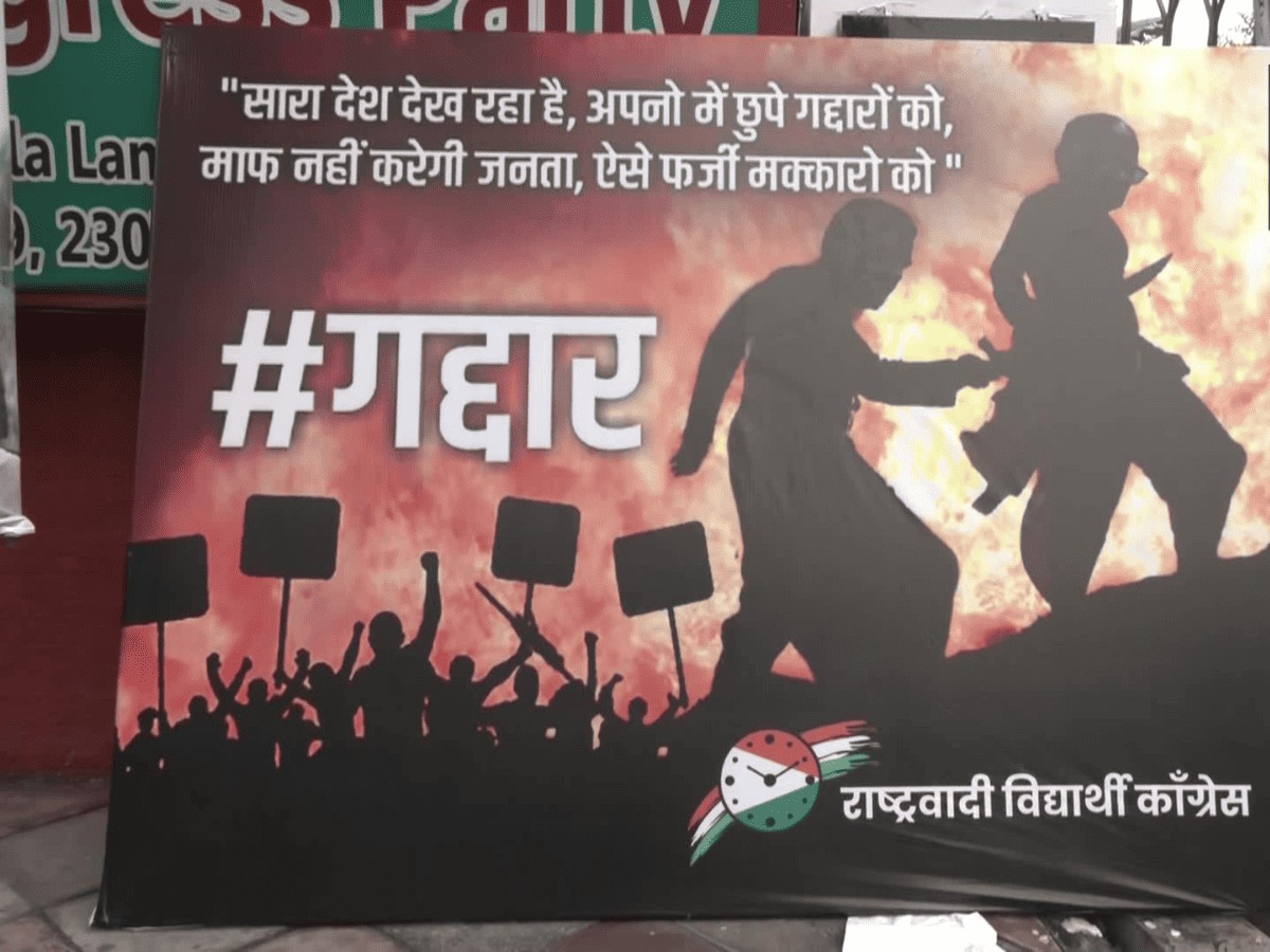 New Delhi: Ahead of the Nationalist Congress Party (NCP) National Executive meeting in Delhi on Thursday, a poster war erupted as its student wing put up posters outside the party office dubbing Ajit Pawar as a ‘gaddar’.