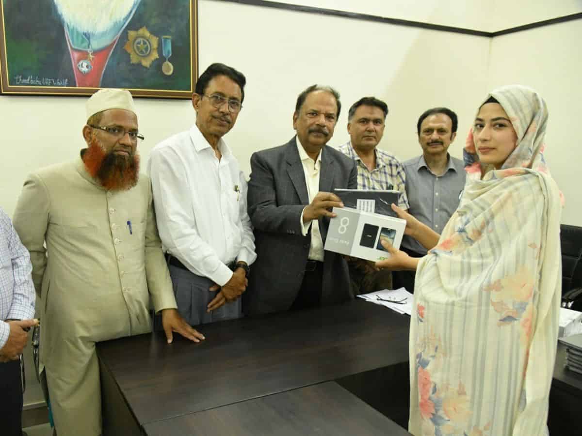 AMU’s VC, Professor Mohammad Gulrez, attended a special ceremony organized by the Dean’s students welfare office, where he distributed approximately 350 tablets to the students.