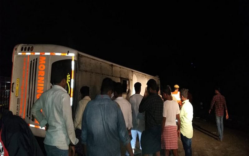 Anantapur: A private bus carrying 36 passengers met with an accident near Pamurayi village in Anantapuram rural Mandal of Anantapuram district in the wee hours of Thursday. The Hyderabad bound bus overturned at around 3 am after hitting the divider while crossing a curve on the road.