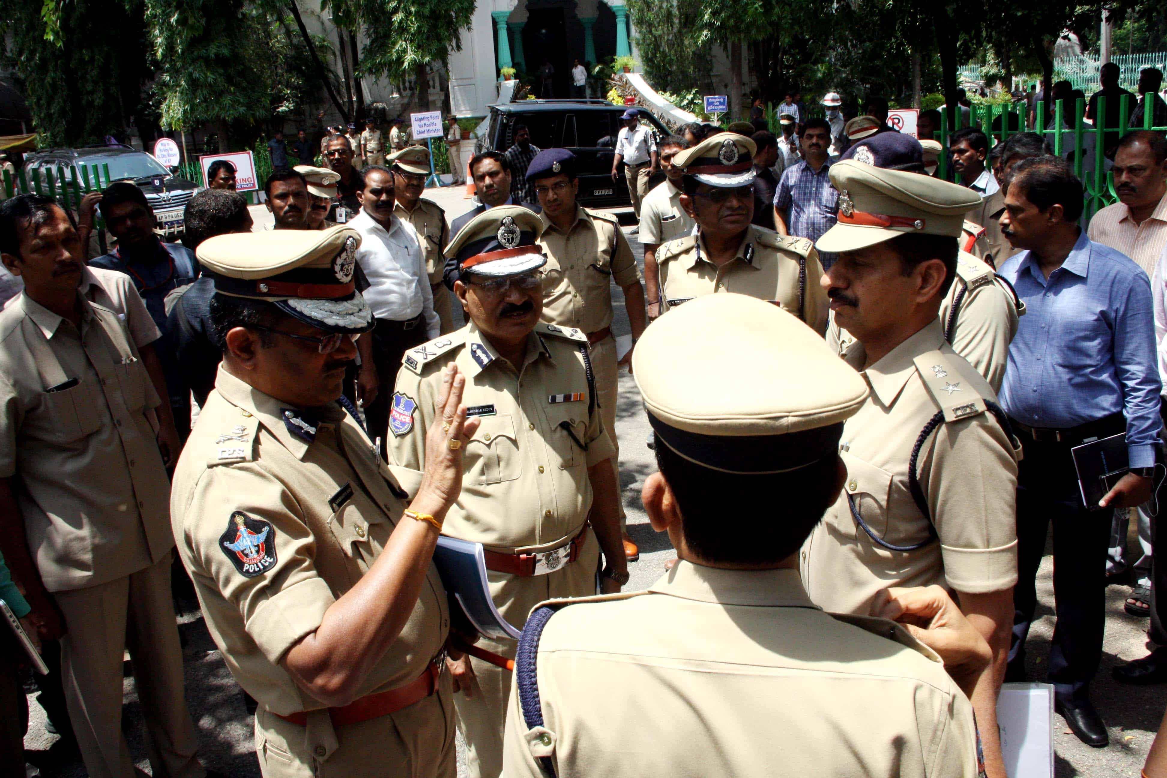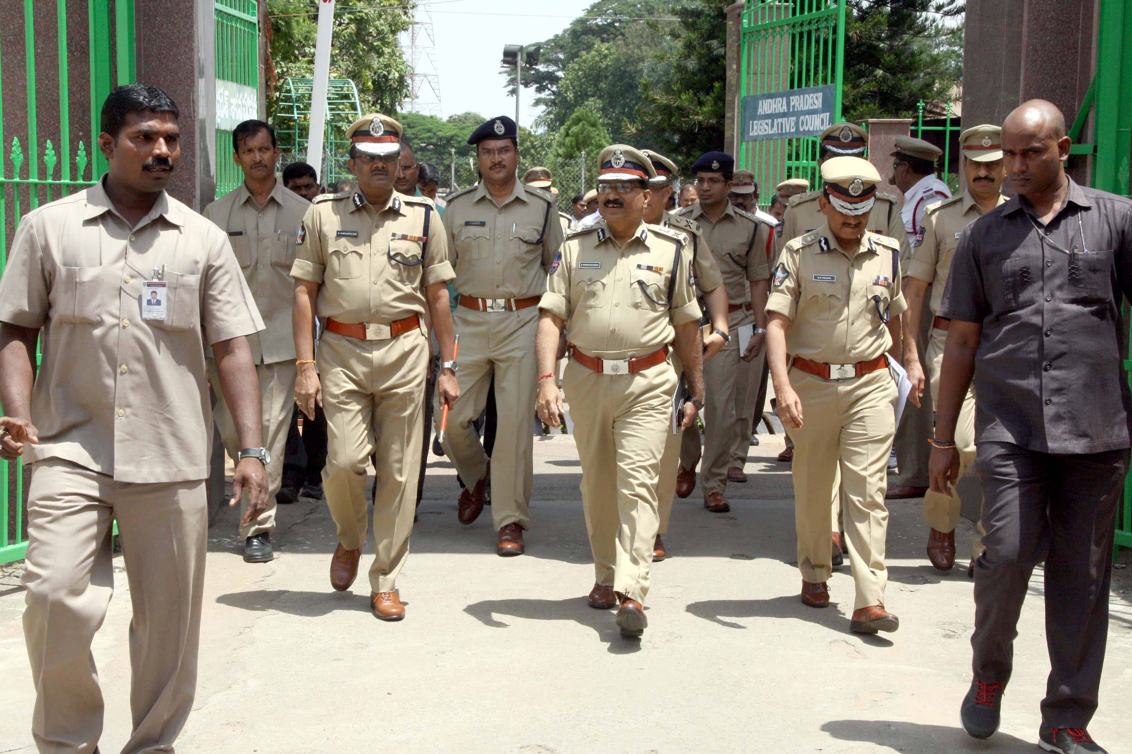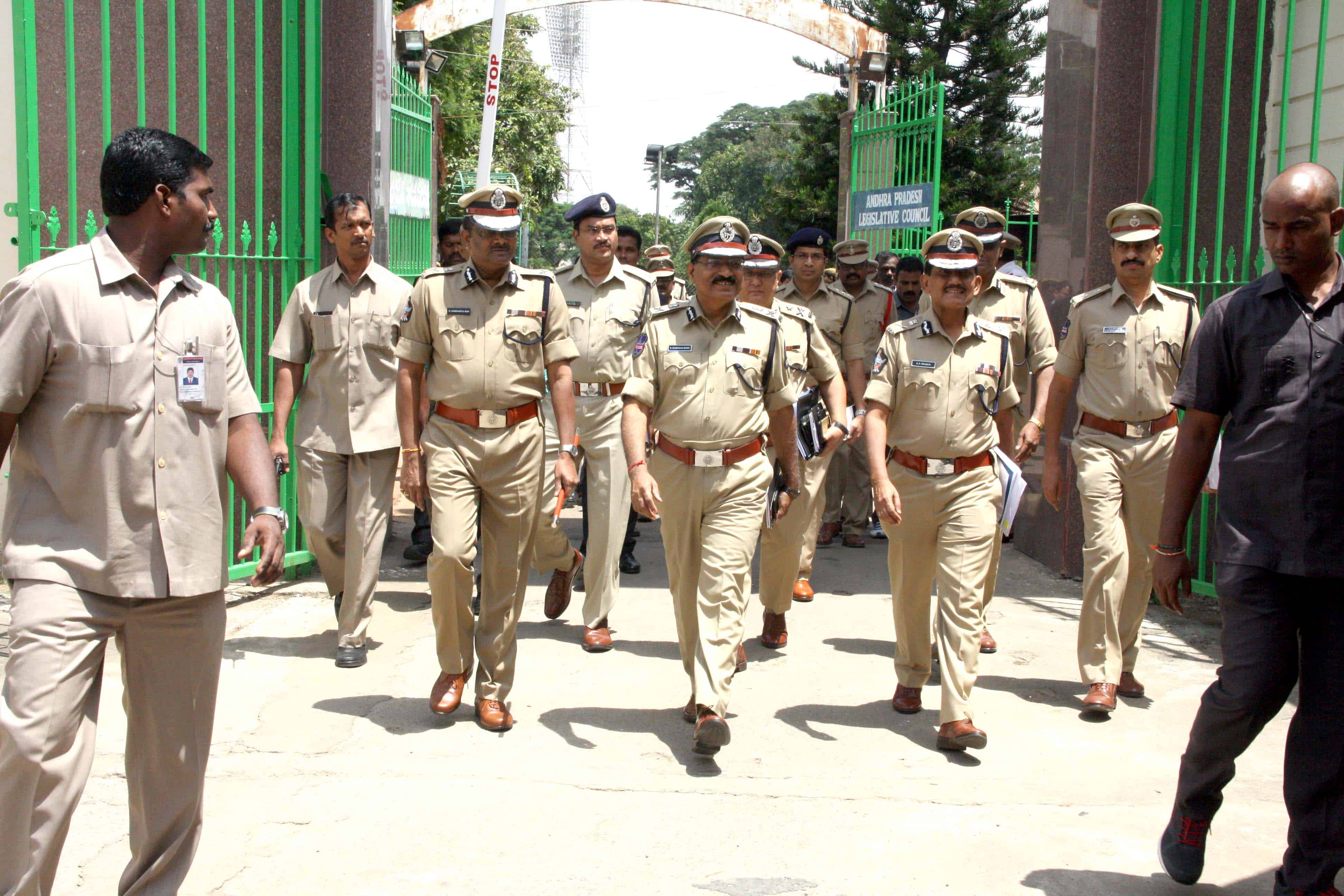 DGP Andhra Pradesh and CP of Telangana are coming out of the Assembly premises after inspecting the arrangements for the Andhra Pradesh Assembly session to begin from September 8.Photo:Laeeq