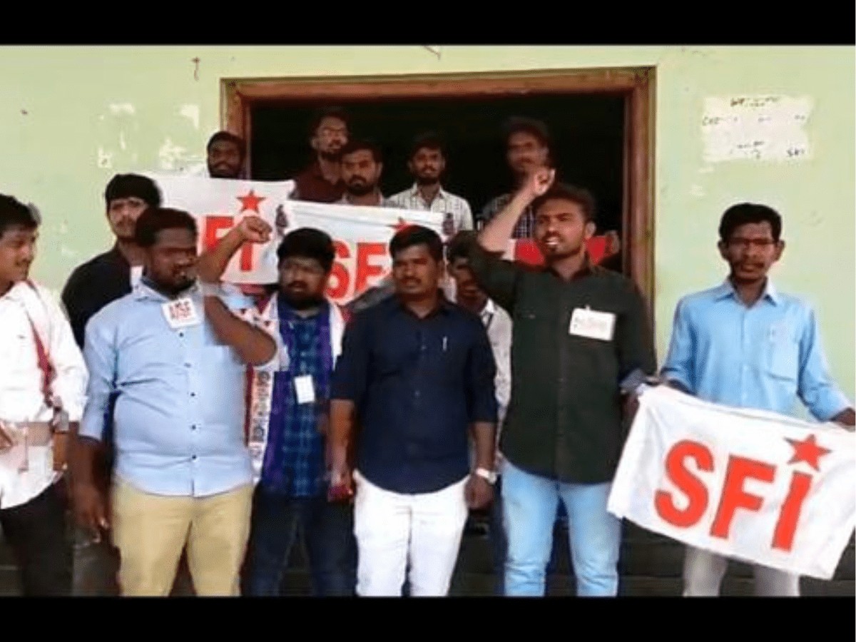 The protesting students, who are also members of the Student Federation of India (SFI) urged that the universities should be a place of scientific temperament and avoid the promotion of superstitious beliefs.