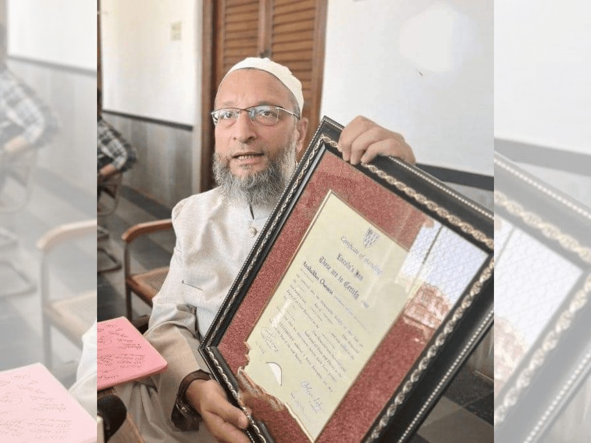 Hyderabad: AIMIM president Asaduddin Owaisi on Monday showed his bar-at-law degree from Lincoln’s Inn, amid ‘show your degree’ campaign by AAP to mock Prime Minister Narendra Modi over his educational qualification.