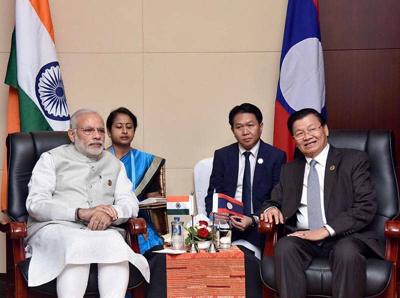 VIENTIANE, SEP 8 (UNI):- Prime Minister, Narendra Modi (L) meeting the Prime Minister of Lao PDR, Thongloun Sisoulith, at Vientiane, Lao PDR on Thursday. UNI PHOTO-10U