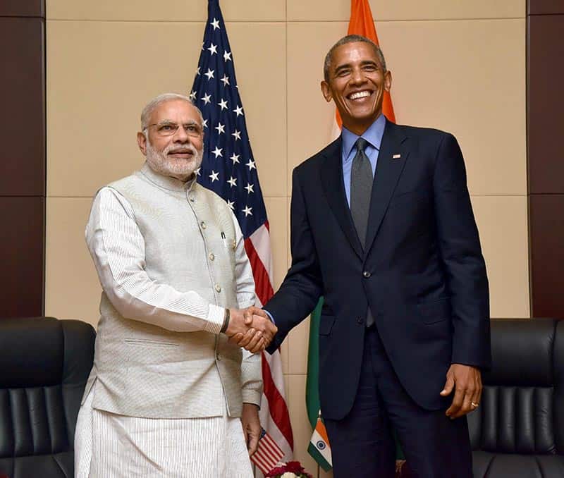 VIENTIANE, SEP 8 (UNI):- Prime Minister Narendra Modi (L) meeting with President of United States of America (USA) Barack Obama, on the sidelines of the 11th East Asia Summit, at Vientiane, Lao PDR on Thursday. UNI PHOTO-19U