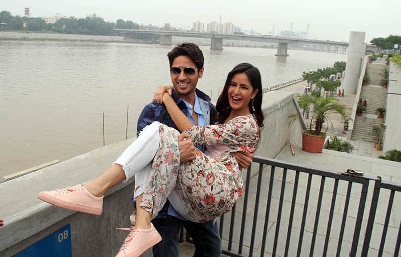 Bollywood actress Katrina Kaif with Sidharth Malhotra pose for photographers at Sabarmati River while promoting their up coming film ‘Baar Baar Dekho’ in Ahmedabad on Monday. UNI PHOTO