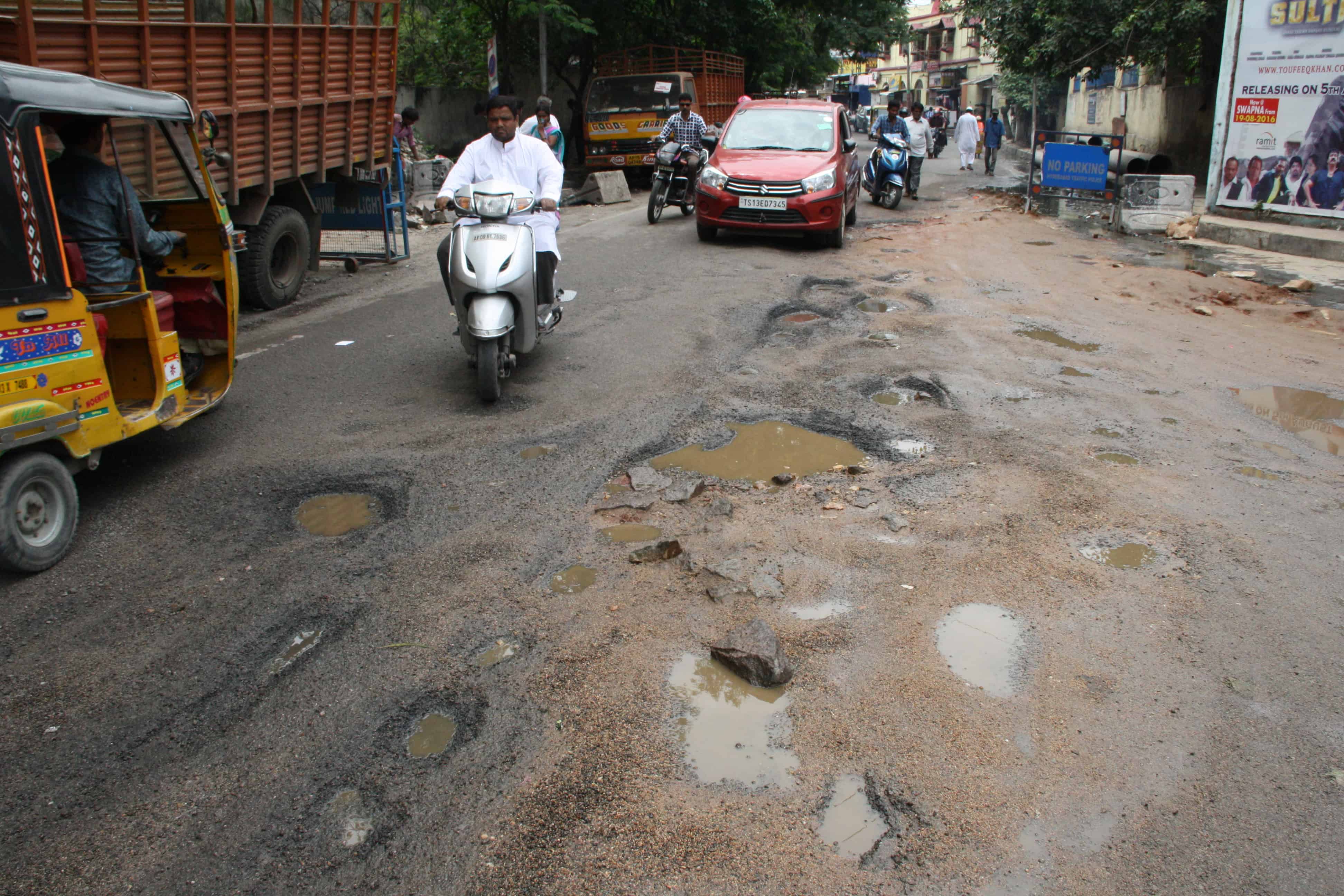 Bad Roads go away September 10, 2016 by laeeq Bad roads, potholes over the City roads giving nightmares to commuters in Hyderabad.Photo:Laeeq