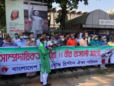 Rana Dasgupta said, “At least 11 people from minority communities were threatened of murder, 30 were gang-raped and tortured, 23 were kidnapped, 23 were abducted, 34 were threatened to leave Bangladesh, 27 Goddess Durga idols were vandalised, 23 temples were attacked and many such incidents have happened in recent past in various part of the country. The culprits should be arrested immediately.”