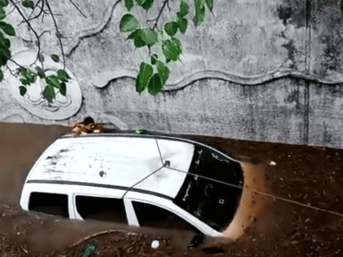 According to those present at the spot, the car driver tried to zoom through the water, but in the middle of the underpass the car almost got submerged. The occupants of the vehicle came out frantically trying to save themselves.