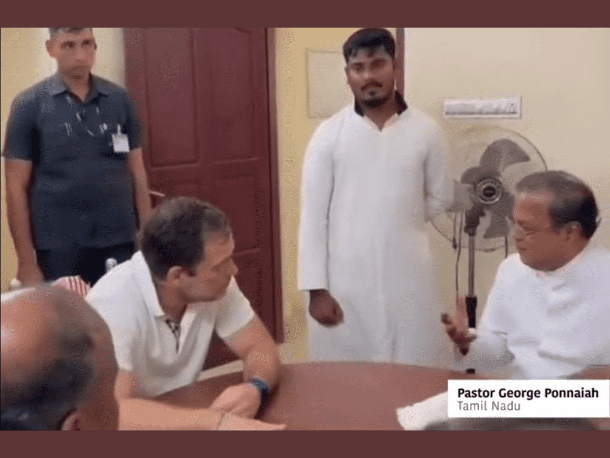 In the video shared by several BJP leaders among others, the priest identified as George Ponnaiah is purportedly heard telling Gandhi that Jesus Christ is the “real god. …revealed as a human being. Not like Shakti…” He was responding to the Congress leader’s query if Jesus is considered god or not.
