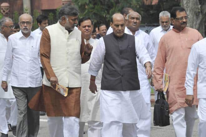 BJP Parliamentary Party meeting at Parliament Library building August 3, 2016 by arshad Prime Minister Narendra Modi with senior party leaders L K Advani, Rajnath Singh, M Venkaiah Naidu and others attending the BJP Parliamentary Party meeting at Parliament Library building in New Delhi on Tuesday. UNI PHOTO