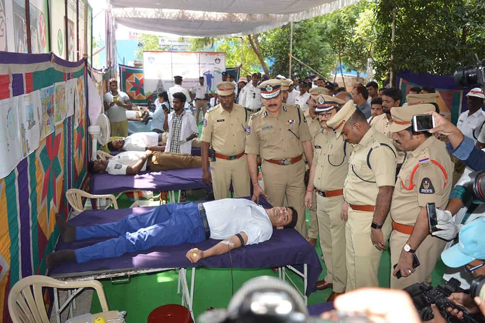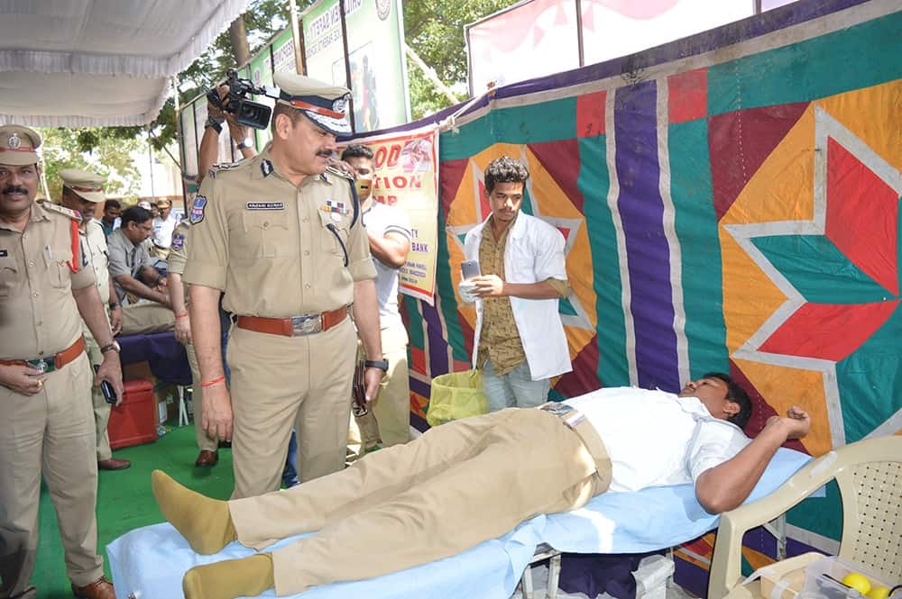 Hyderabad Traffic Police Organized a Blood donation camp at Goshamahal Traffic Police station on the occasion of Police commemoration day, City Police Commissioner Mr. Anjani Kumar (IPS) attended the program as a chief guest. (Photo: A Murali)