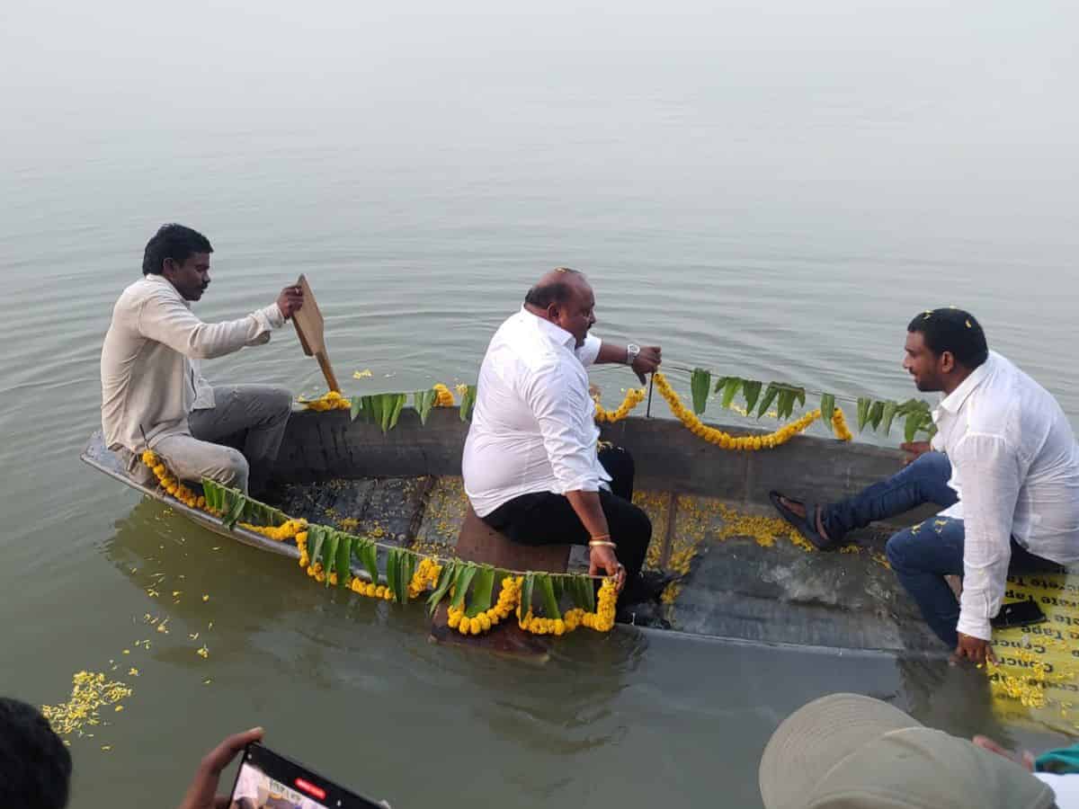 Gangula was participating in the decennial celebrations of Telangana Formation Day in the district, following which he sat on the boat with two other people to take a tour in the water of the village tank.