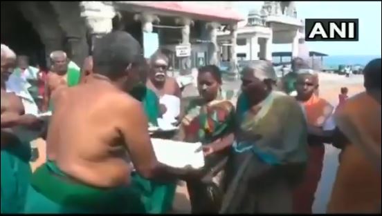 #WATCH: Heated argument ensued between District Secretary of the BJP's women's wing Nellaiyammal and Tamil Nadu Farmer leader P Ayyakannu outside premises of Sri Subramania Swamy Temple in Thiruchendur when the latter was allegedly distributing pamphlets criticising Central govt. pic.twitter.com/Ze8FJu5FN0