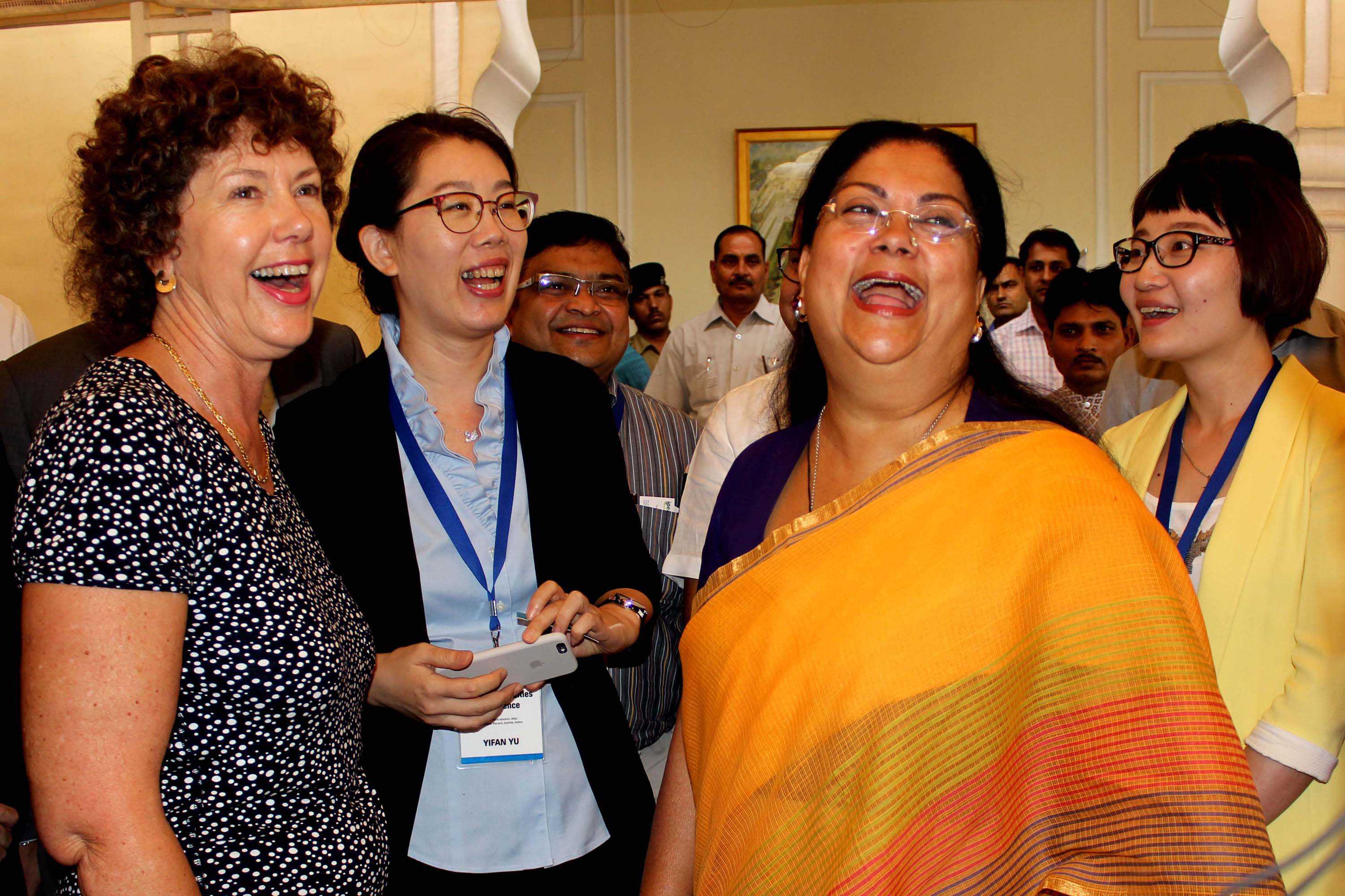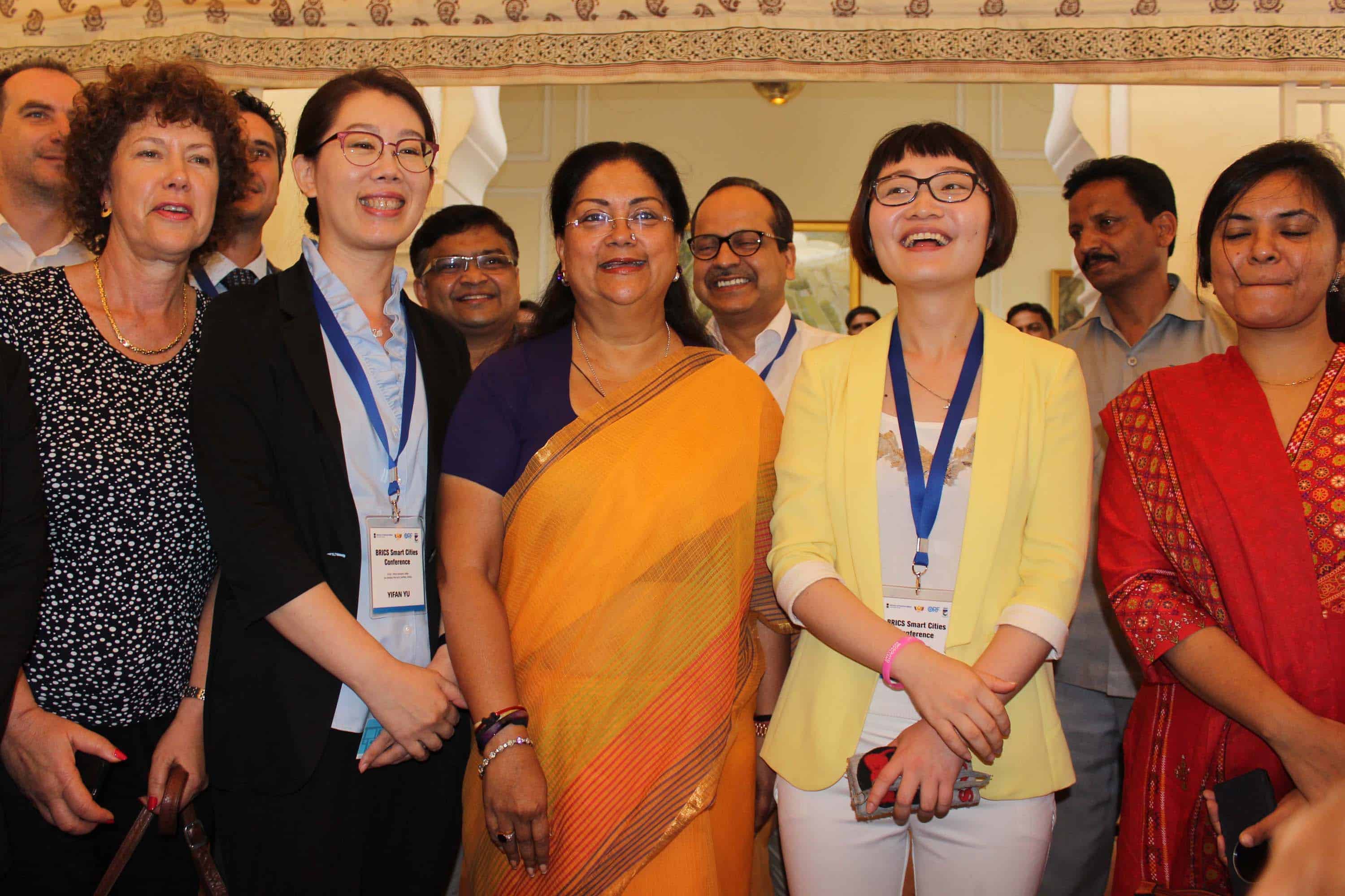 JAIPUR, AUG 19 (UNI) Rajasthan chief Minister Vasundhra Raje with BRICS members at a conference on Smart Cities,in Jaipur on Friday. UNI PHOTO-74U