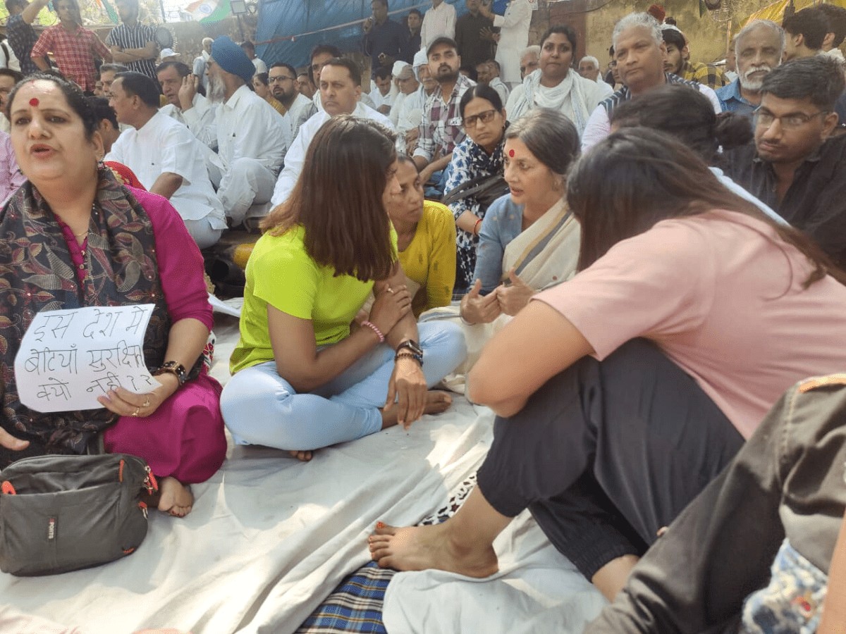 When Karat reached the protest site on Tuesday, the wrestlers apologised to her for the incident which happened last time.