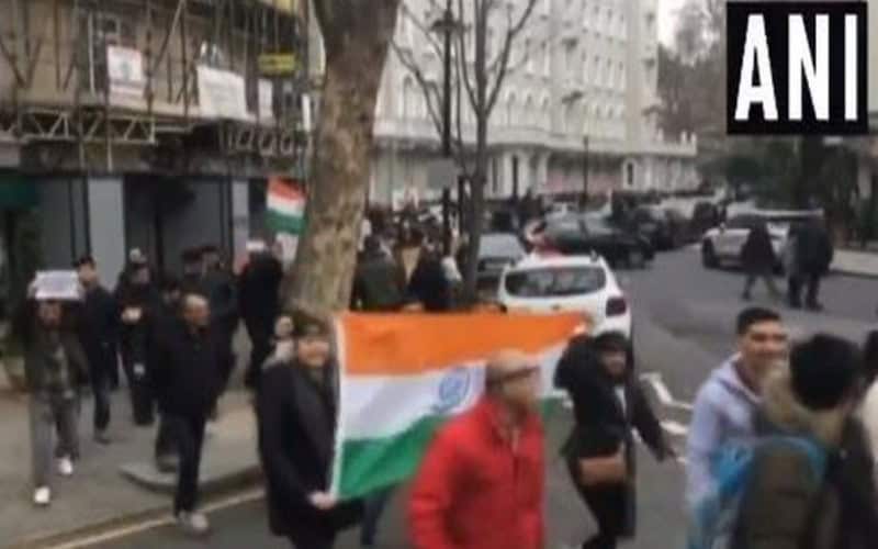 London [UK]: To honour the martyrs of the Pulwama terror attack, hundreds of British Indians on Sunday staged a protest in the United Kingdom demanding strict action against Pakistan.