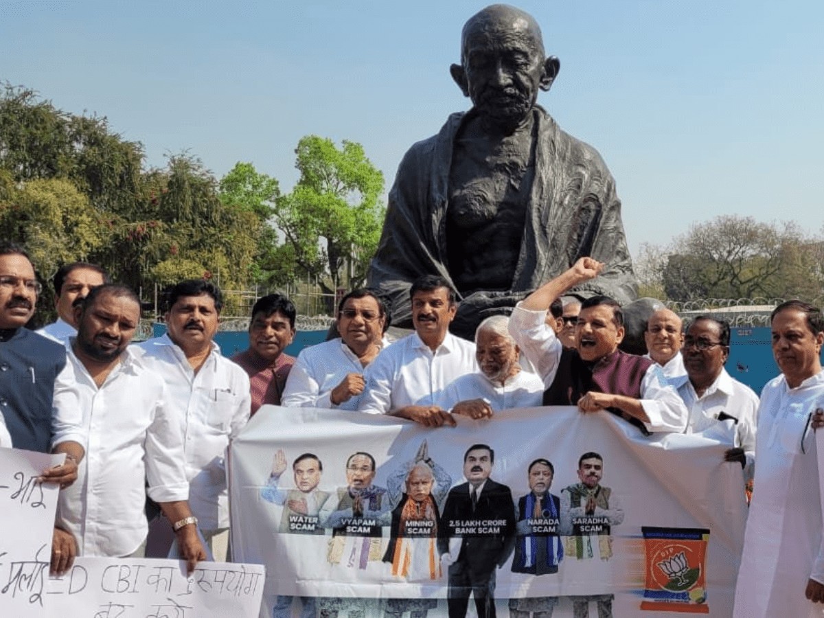 They held placards inside the House and later walked out and held a demonstration at the statue of Mahatma Gandhi inside the Parliament complex.