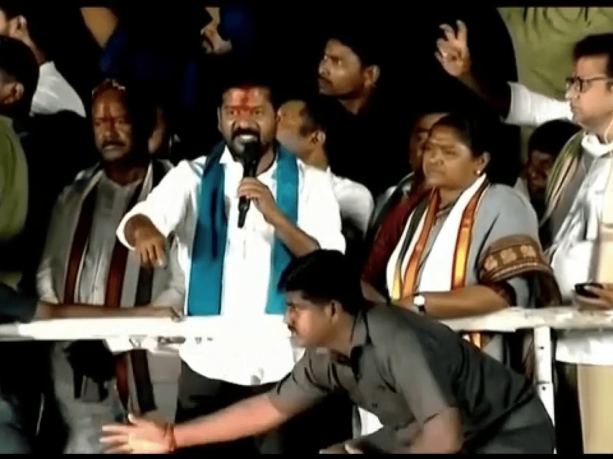 Trouble began when BRS supporters raised slogans against Revanth Reddy when he was addressing the public meeting. They tried to surge towards the dais. Police acted swiftly to lock up the protestors in the premises of a nearby cinema theatre.