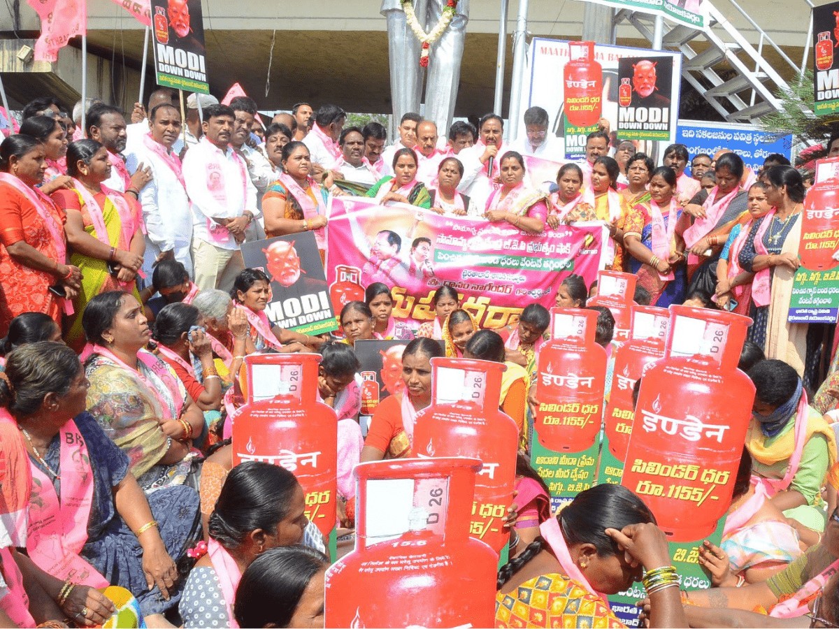 Hyderabad: Telangana’s ruling Bharat Rashtra Samithi (BRS) protests across the state against the hike in price of cooking gas continued for the second consecutive day on Friday.