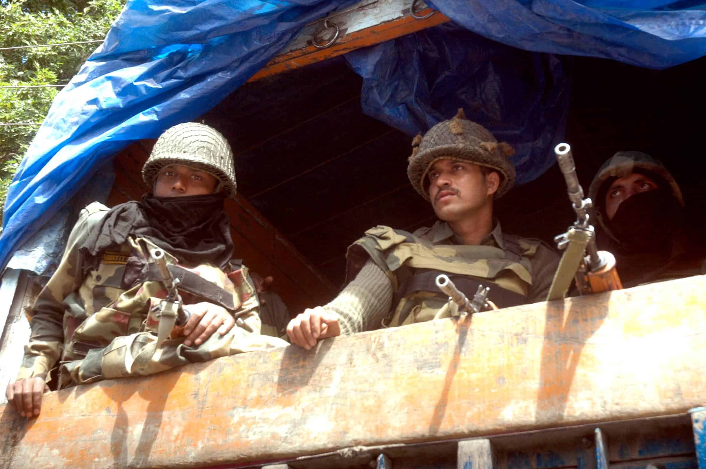 SRINAGAR, AUG 23 (UNI) Border Security Force personnel arrive Srinagar to deal with the situations in Kashmir valley where curfew and restrictions remain in force on the 46th day on Tuesday. UNI PHOTO -15U
