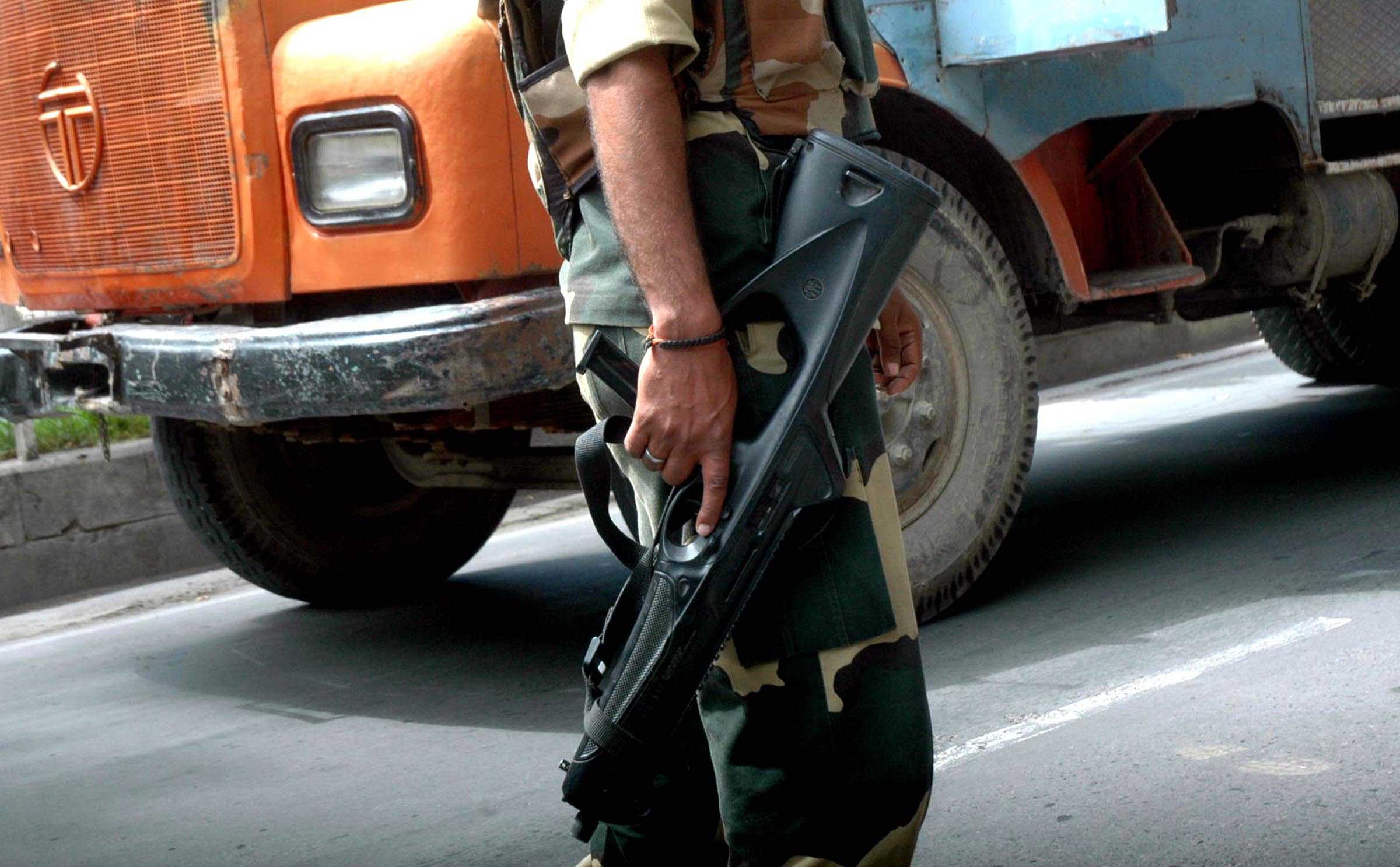 SRINAGAR, AUG 23 (UNI) Border Security Force personnel arrive Srinagar to deal with the situations in Kashmir valley where curfew and restrictions remain in force on the 46th day on Tuesday. UNI PHOTO -13U