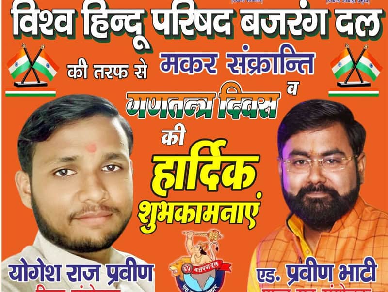 BULANDSHAHR: A poster by Bajrang Dal and Vishwa Hindu Parishad wishing people on the occasion of Makar Sankranti and Republic Day has images of Bulandshahr murder accused as heroes.