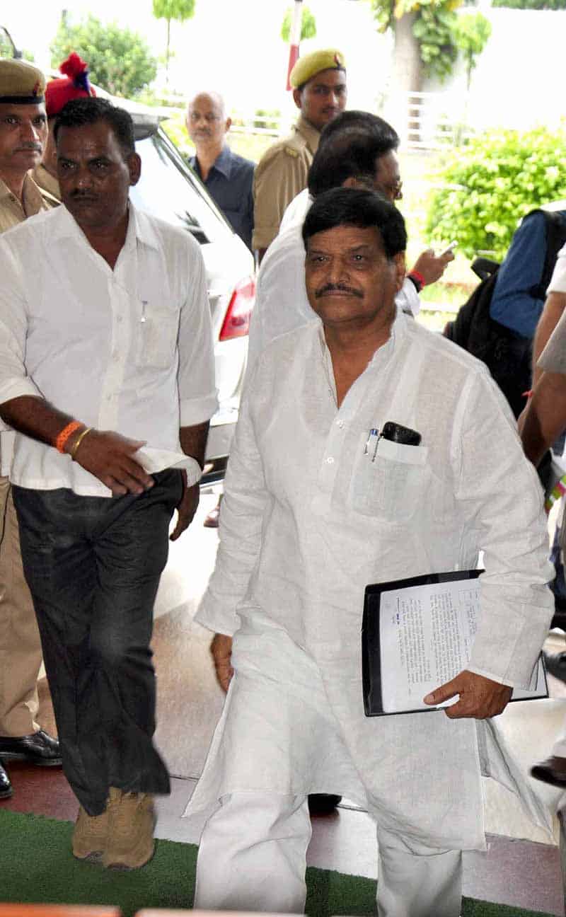 LUCKNOW, SEP 20 (UNI):- U P Cabinet minister and SP state president Shivpal Singh Yadav arriving to attend the cabinet meeting in Lucknow on Tuesday.UNI PHOTO-16u