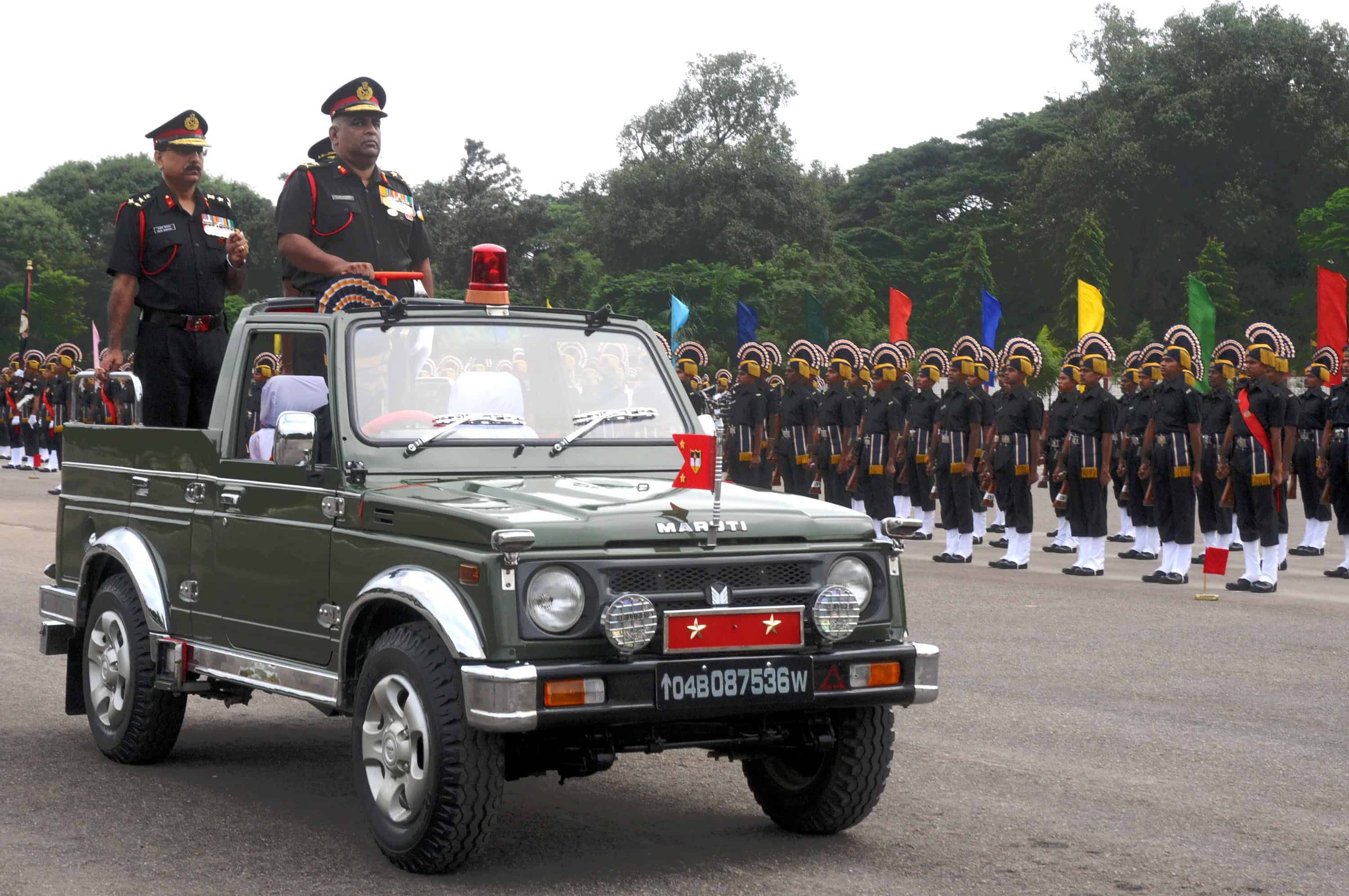 BENGALURU, AUG 12 (UNI) – Major General N S Rajpurohith, Deputy Commandant and Chief Instructor, ASC Centre and College, reviewing passing out parade of 240 ASC recruits, at ASC Centre No 2, in Bengaluru on Friday. UNI PHOTO-45U
