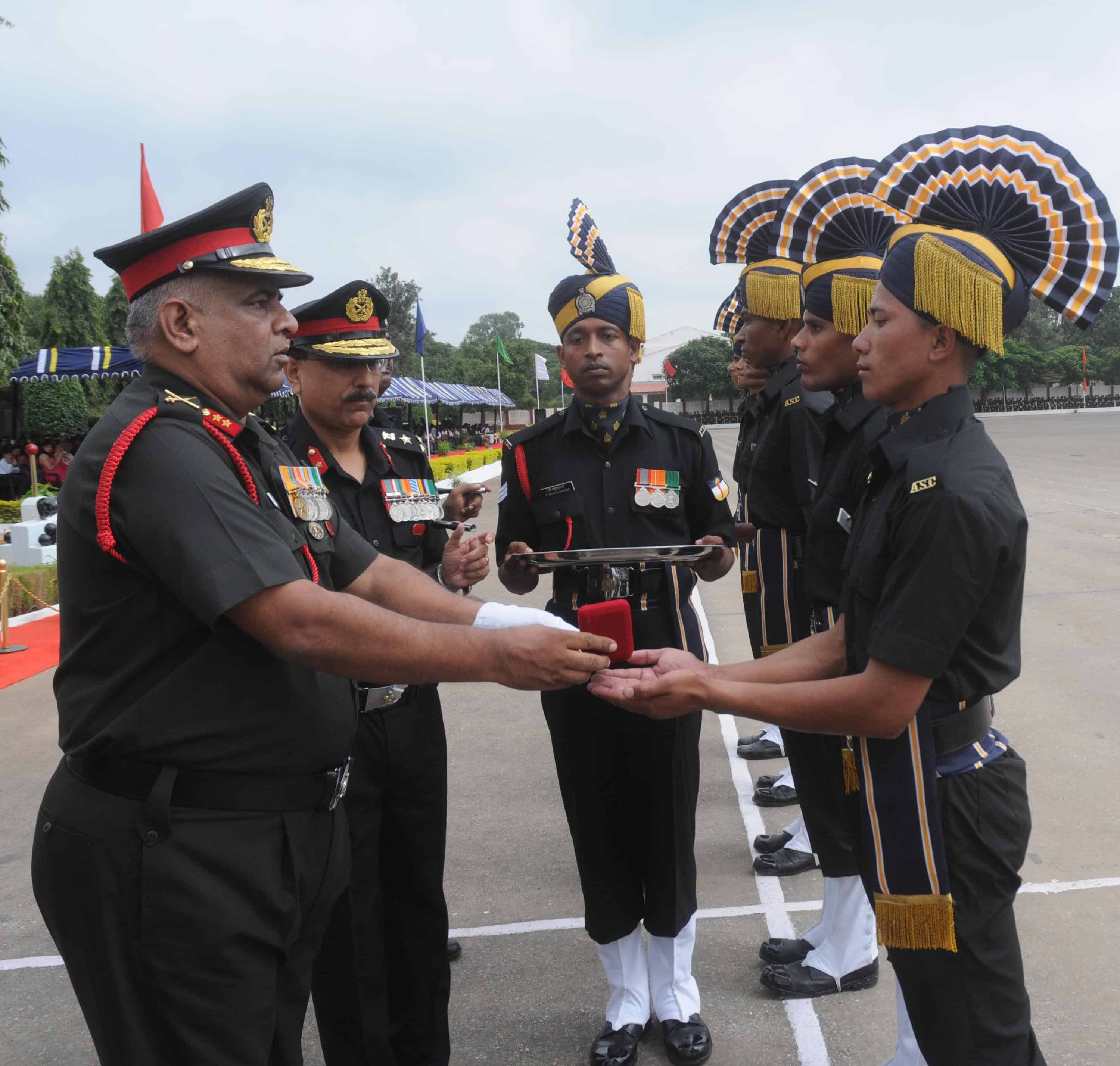 BENGALURU, AUG 12 (UNI)- Major General N S Rajpurohith, Deputy Commandant and Chief Instructor, ASC Centre and College presenting medals and awards during passing out parade of 240 ASC recruits of ASC Centre No 2, in Bengaluru on Friday. UNI PHOTO-50u