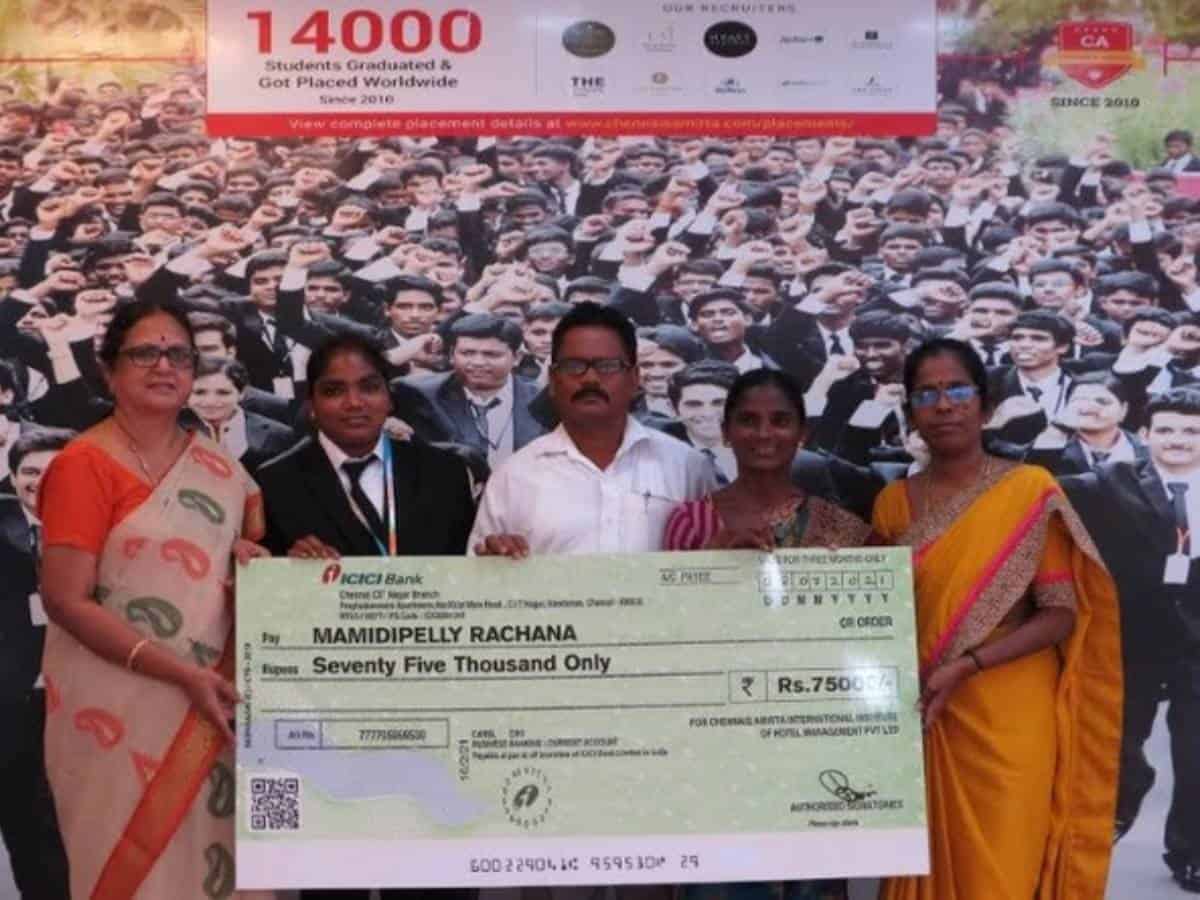 Hyderabad: Chennais Amirta International Institute of Hotel Management (CAIIHM), a premier educational institute in the hospitality industry in the country, has waived off the course fee of Rs. 75,000 of one of its students, M Rachana, who is working as a food delivery executive in the city to support her studies and her poor family.