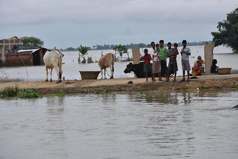 SHEIKHPURA, SEP 3 (UNI):- Villagers waiting for relief in flood affected village in Sheikhpura on Saturday. UNI PHOTO – 127U