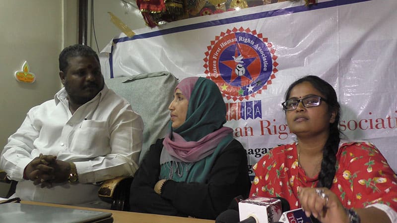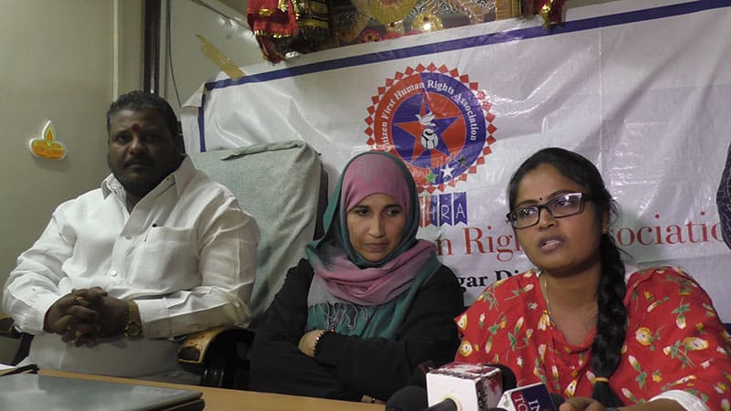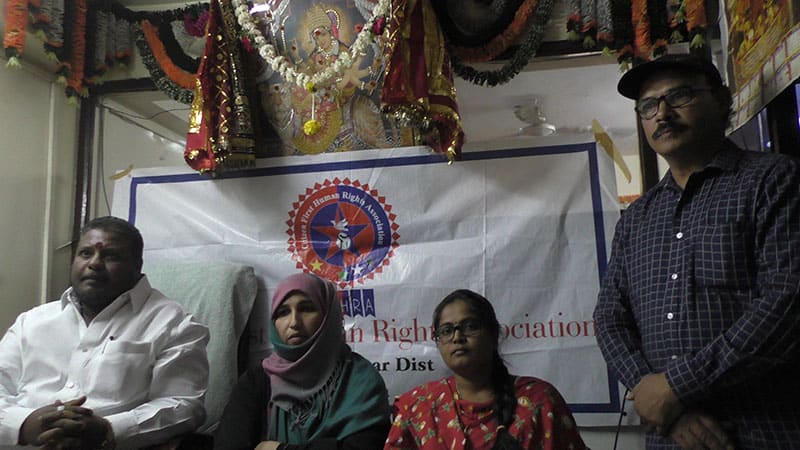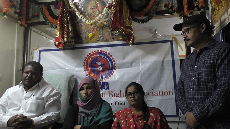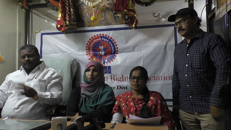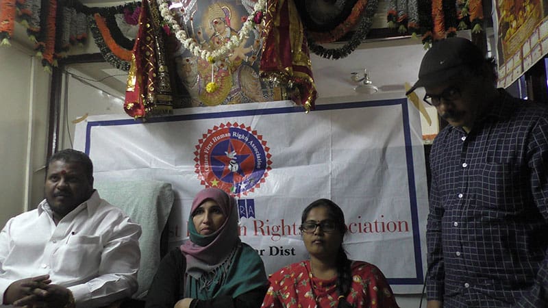 Citizen First Human rights Association organised a press conference for Triple Talaq Bill presented in Parliament presided by Ravula chandrasekhar, National Director, Shalini Jadhav, TS President (HRD Wing), TS Vice president (Womens wing), Reshma Nazneen, president Nagar Kurnool District in Hyderabad. (Faheem Ansari)