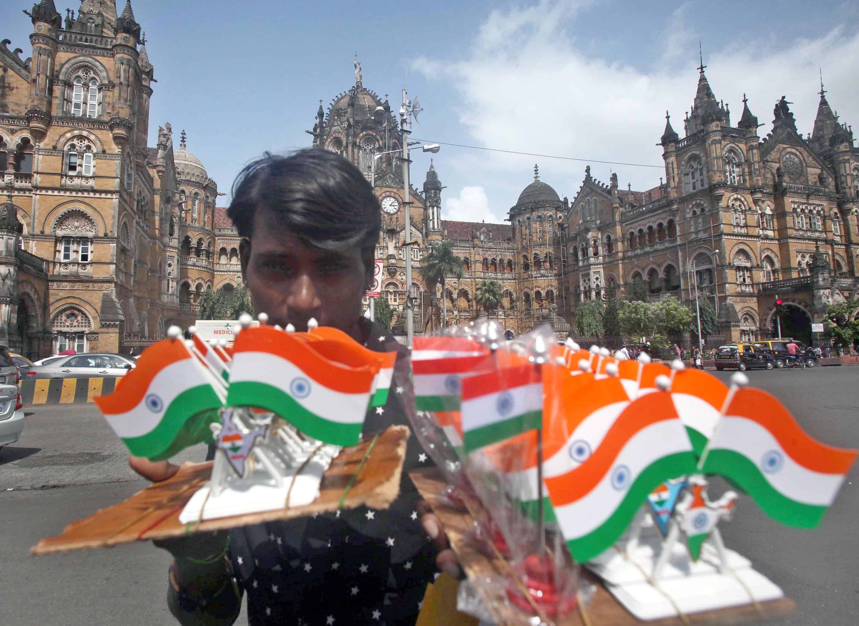 A vendor selling Indian National Flag,waiting for custormes ahead of Independence Day function in Mumbai on Thursday. UNI PHOTO
