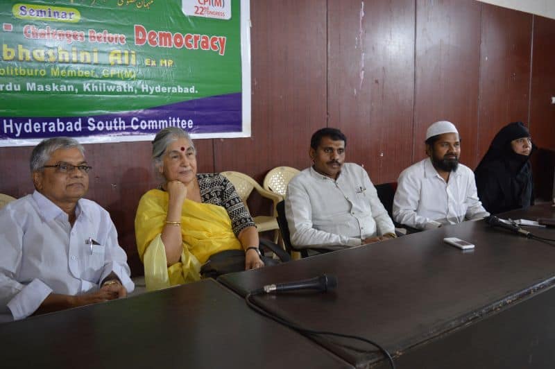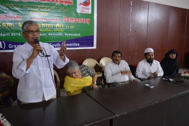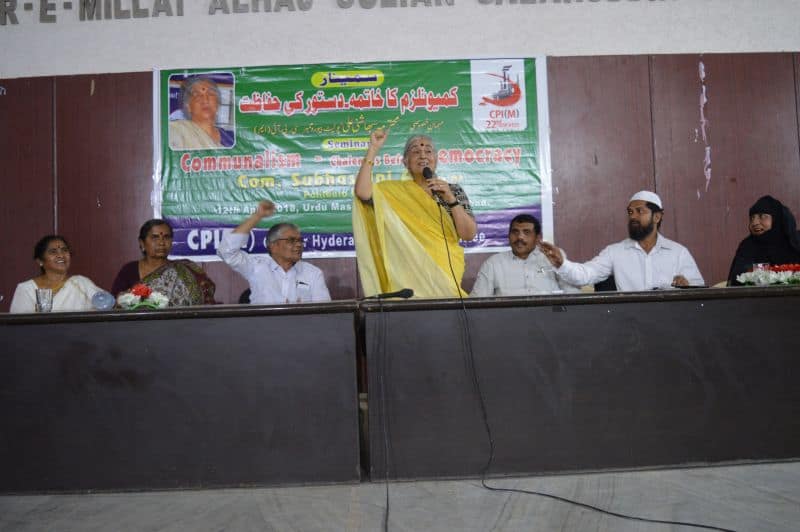 Communist Party of India (M) organises 22nd Congress in Hyderabad on Thursday at Urdu Maskan. Former MP, Subhashini Ali addresses the meeting as Chief Guest. (Pics. Murli)