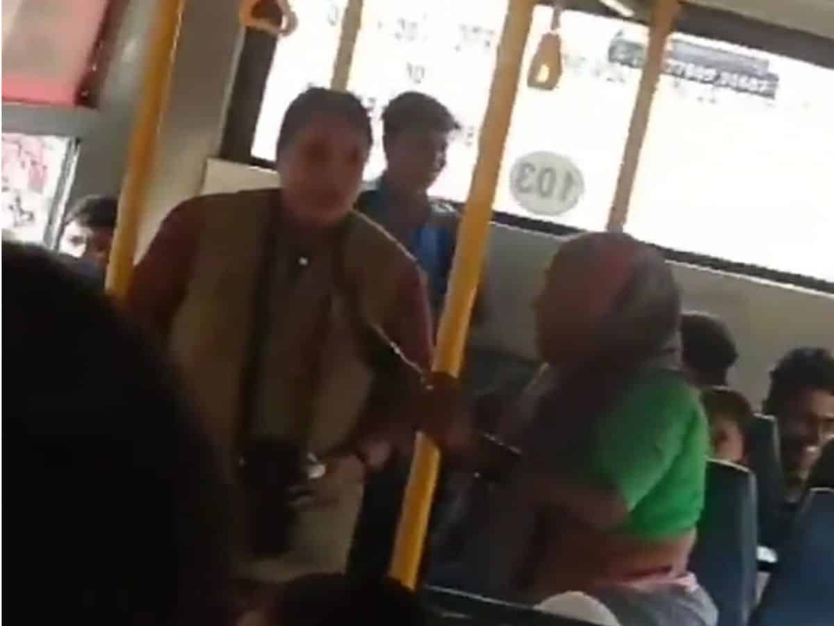 The incident took place in a bus plying between Kundgol to Hubballi. A 55 second video shows an argument breaking out between the conductor and the old woman.